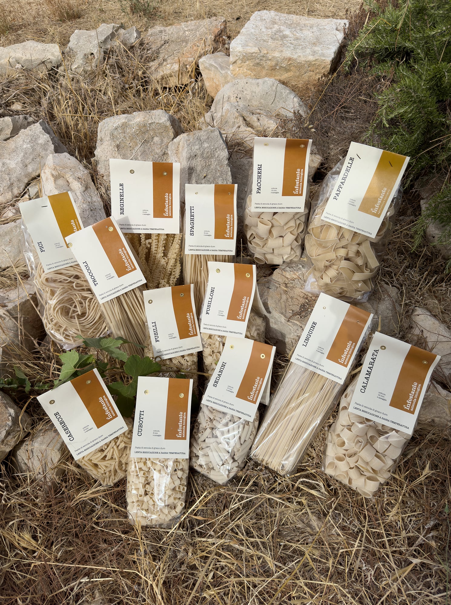 Calamarata, Capunti, Caserecce, Cavatelli, Cubotti, Fusilli, Fusilloni, Linguine, Orecchiette, Paccheri, Pici a Nido, Reginelle, Sedanini, Strozzapreti, Troccoli